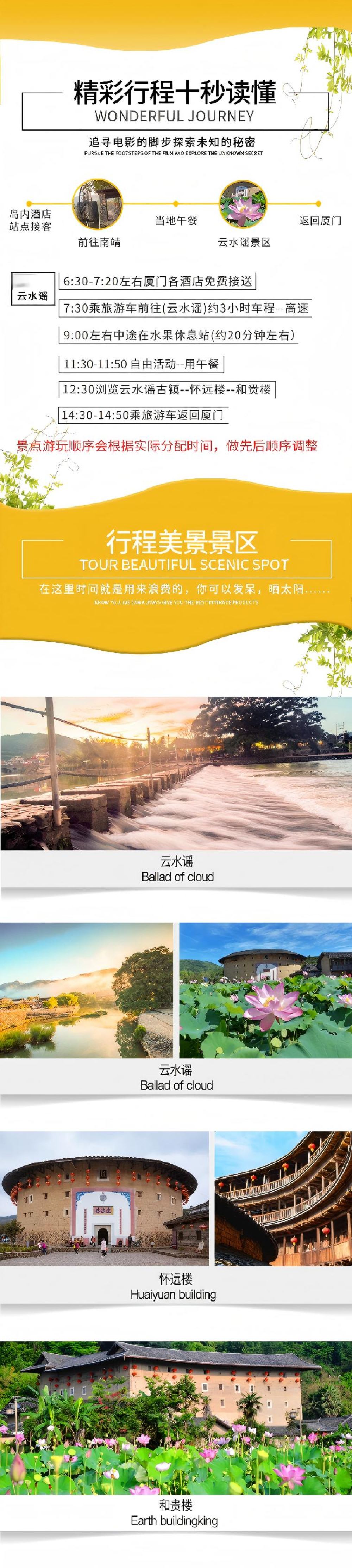 厦门旅游漳州南靖土楼+云水谣古镇+和贵楼+怀远楼一日游大团【[经典景区]精华景点,漫步云水谣古道,看土楼前世今生,打卡客家土楼,感受传统文化,老少皆宜!】