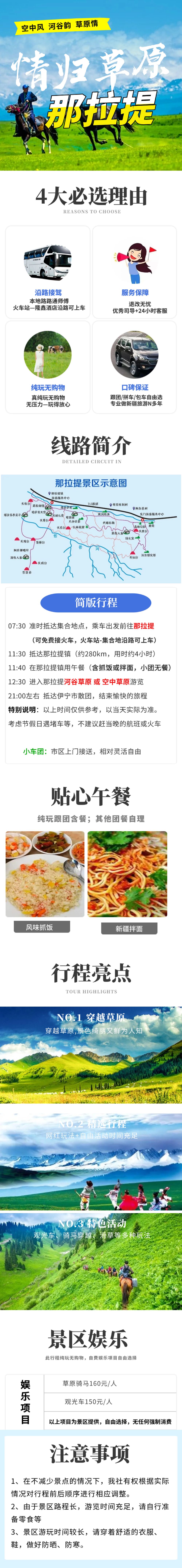 温馨提示:1. 空中/河谷草原 选定的套餐原则上不支持修改(如需修改,请在买票前提前告知导游);空中草原到景区后,需自行坐区间车前往游玩,导游不陪同前往(导游去河谷草原),请知晓! 2.全程优秀导游服务(10人及10人以下无专职导游,司机兼向导)