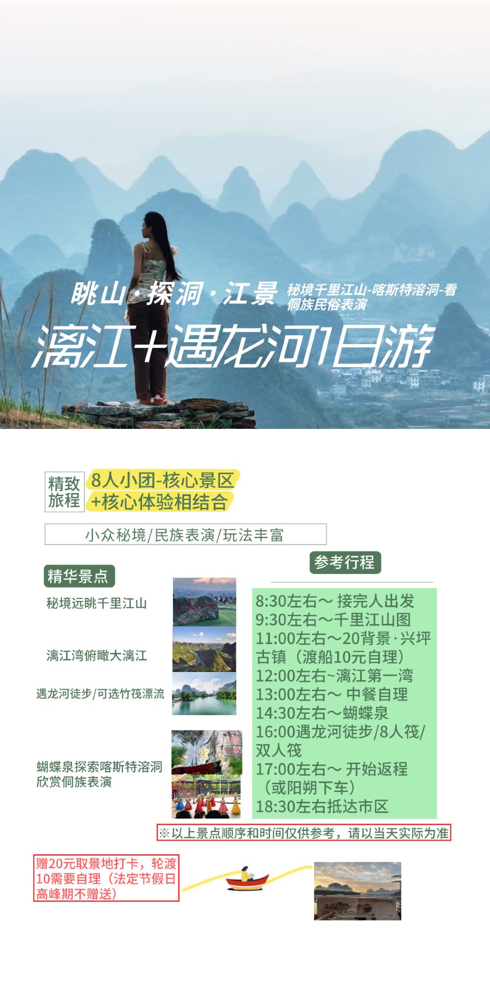 桂林漓江遇龙河一日游丨秘境千里江山-喀斯特溶洞-侗族民俗表演【8人小团-核心景区+核心体验相结合】