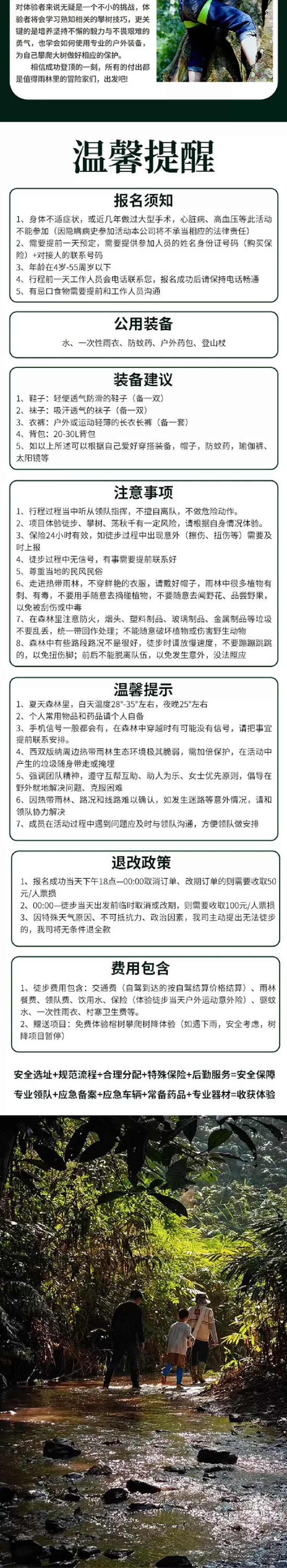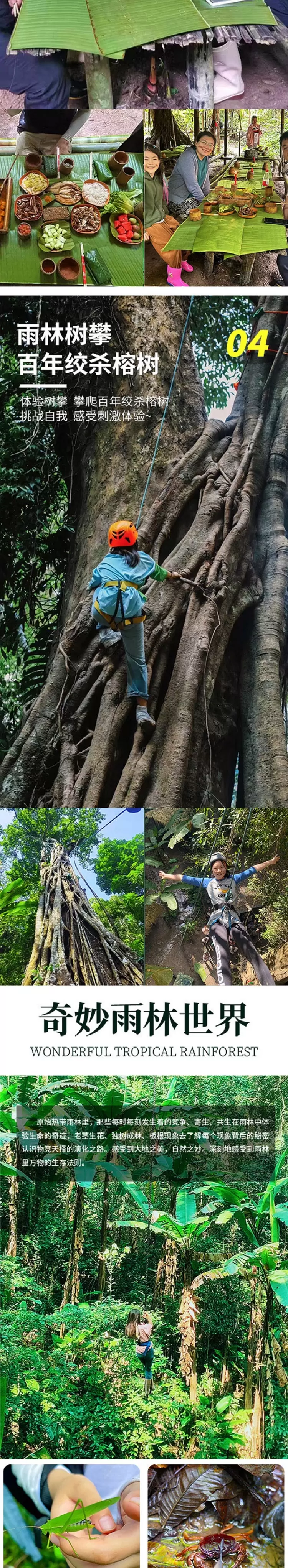热带雨林徒步一日游【么卓路线/土著向导/午餐/树降秋千/溯溪射箭/竹筏/彩绘/4-5km徒步/可选6-8km】