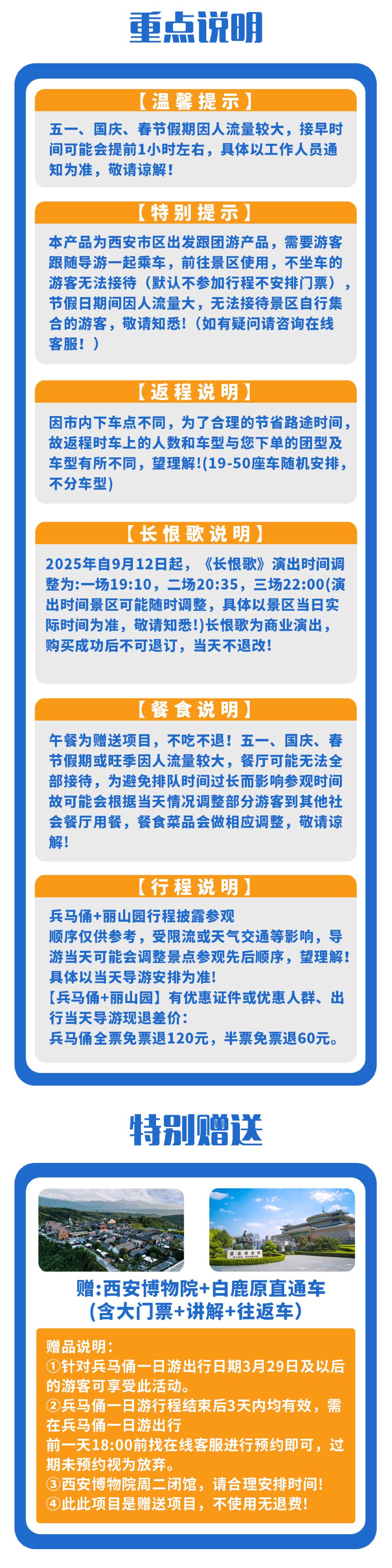 ④自10月17日起,长恨歌时间调整为:第一场:18.30-19.40,第二场:19.55-21.05,第三场:21.20-22.30(演出时间景区可能随时调整,具体以景区当日实际时间为准,敬请知悉)