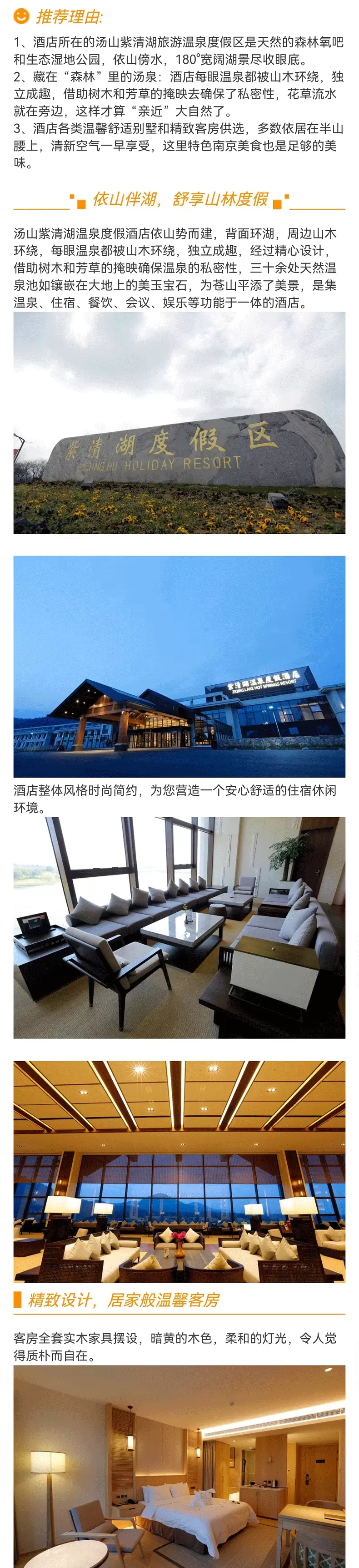 【汤山紫清湖旅游区内】★南京紫清湖温泉度假区1晚+双早+双人无限次森林温泉+可选双人无限次紫清湖野生动物世界