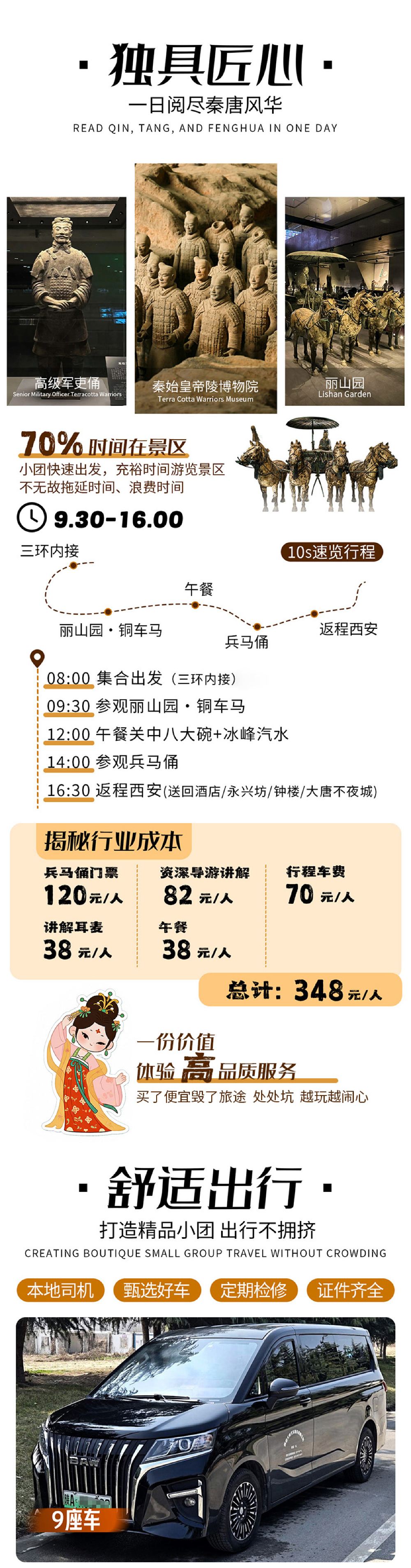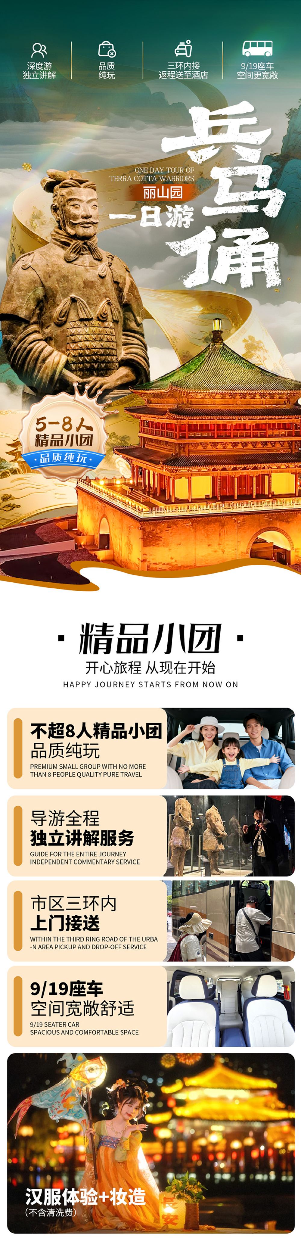 【8人小团】西安兵马俑+丽山园一日游可选千古情/驼铃传奇【[私享级小团]只做精致小团,严格控制人数,24小时管家式在线客服,西安市三环以内上门接送。】