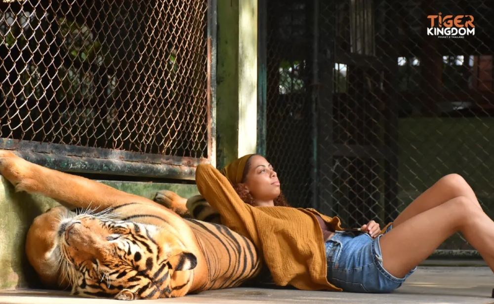 ▲ 在普吉岛的老虎王国里可以让游客与这位威武的森林猛兽一起零距离接触。在这里,你可以与各个年龄段的老虎嬉戏玩耍。