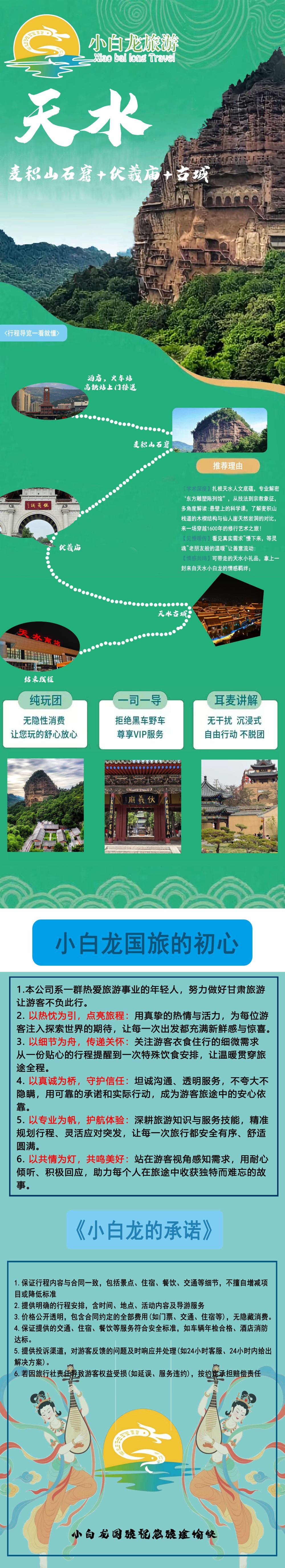 【小白龙甄品】麦积山石窟+伏羲庙+天水古城一日游【耳麦讲解】【拒绝黑车野车,专车守时接送,专导全程陪同】