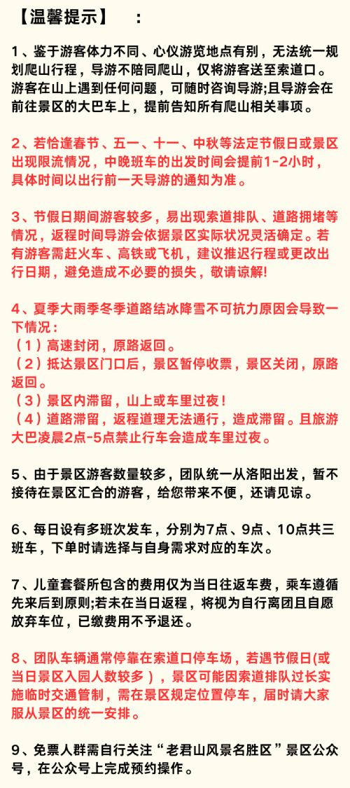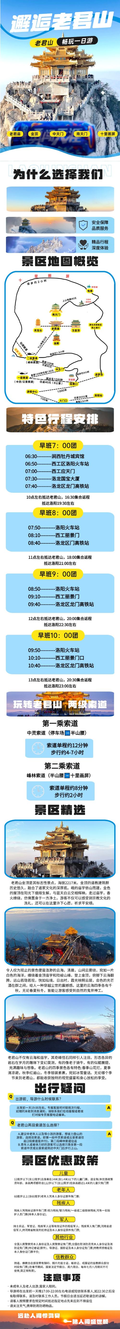 洛阳老君山跟团一日游【纯玩无购物/直达索道口/送祈福牌】【[多种选择]早/中/晚三班选择,请下单选择相对应的车次!具体行程时间以导游通知为准。】