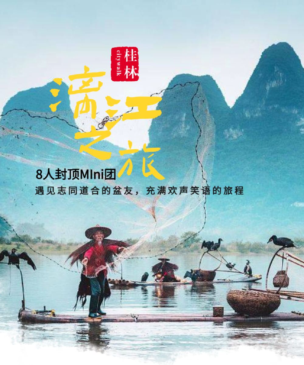 2-8人小团漓江竹筏杨堤-九马+兴坪古镇+相公山【网红鱼鹰表演+20元背景打卡】