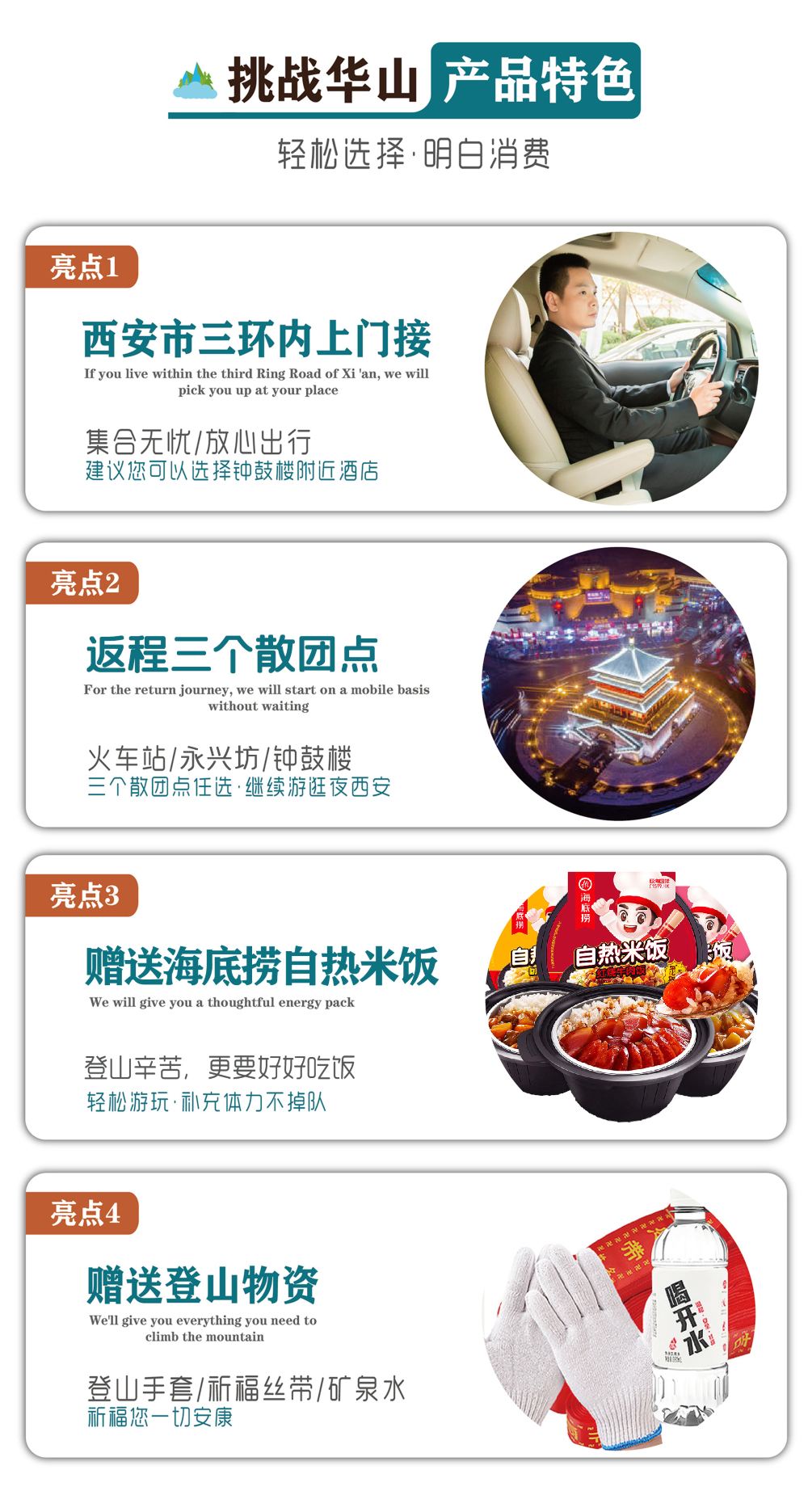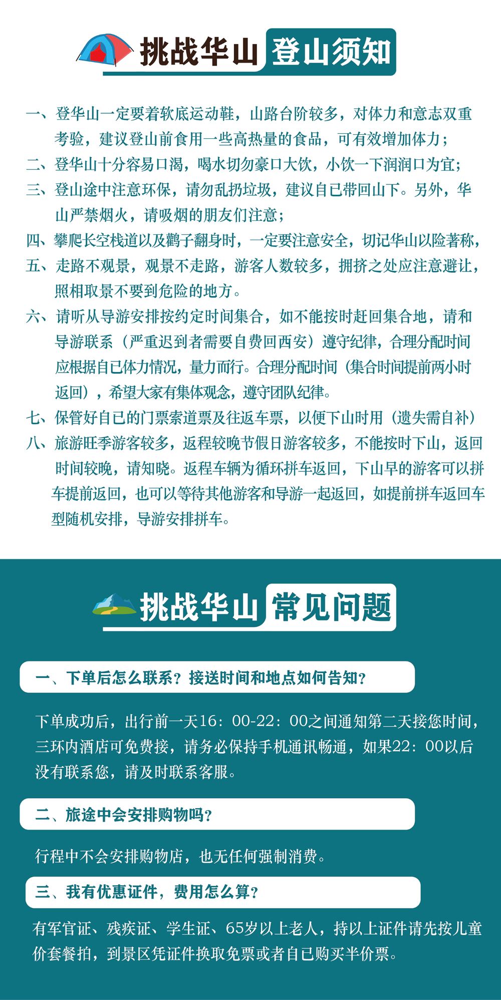 陕西华山一日游无购物赠能量包三环内上门接手套祈福带【三环内上门接,轻松集合不费心】