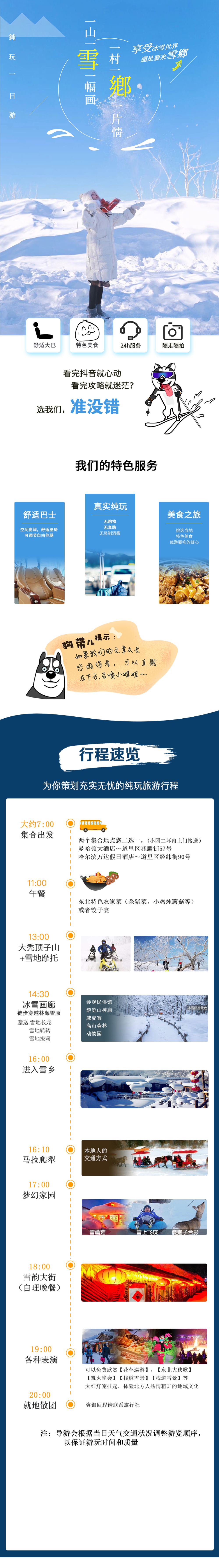 中国雪乡+大秃顶子山一日游雪地摩托 冰雪画廊梦幻家园 纯玩团【哈尔滨起,专车接送,经典小团自由行,全程无购物无自费,行程结束就地散团,具体游玩攻略请咨询客服】