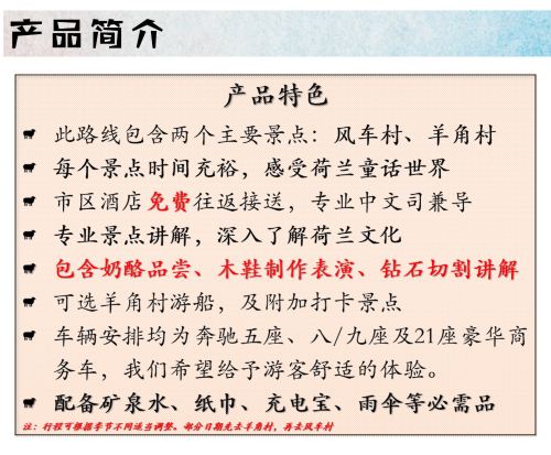 荷兰阿姆斯特丹羊角村+风车村一日游【8人小团、含酒店接送】【阿姆斯特丹市区酒店免费专车接送服务;8人精品小团;荷兰地道午餐推荐,自由选择】