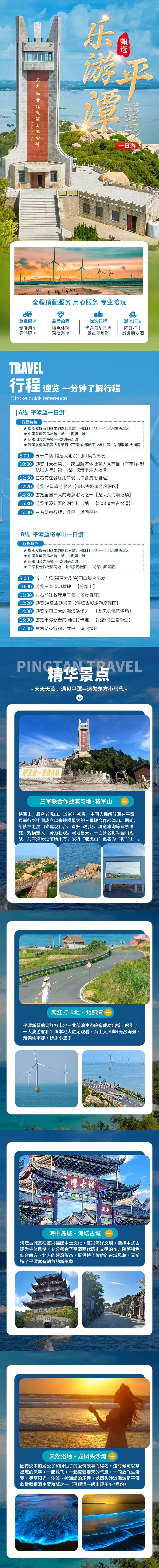 中国福建福州平潭岛一日活动【品质纯玩,可选景点可升级包车游】【A线:大福湾-海坛古城-龙凤头-北部湾生态长廊// B线:将军山-海坛古城-龙凤头-北部湾生态长廊】
