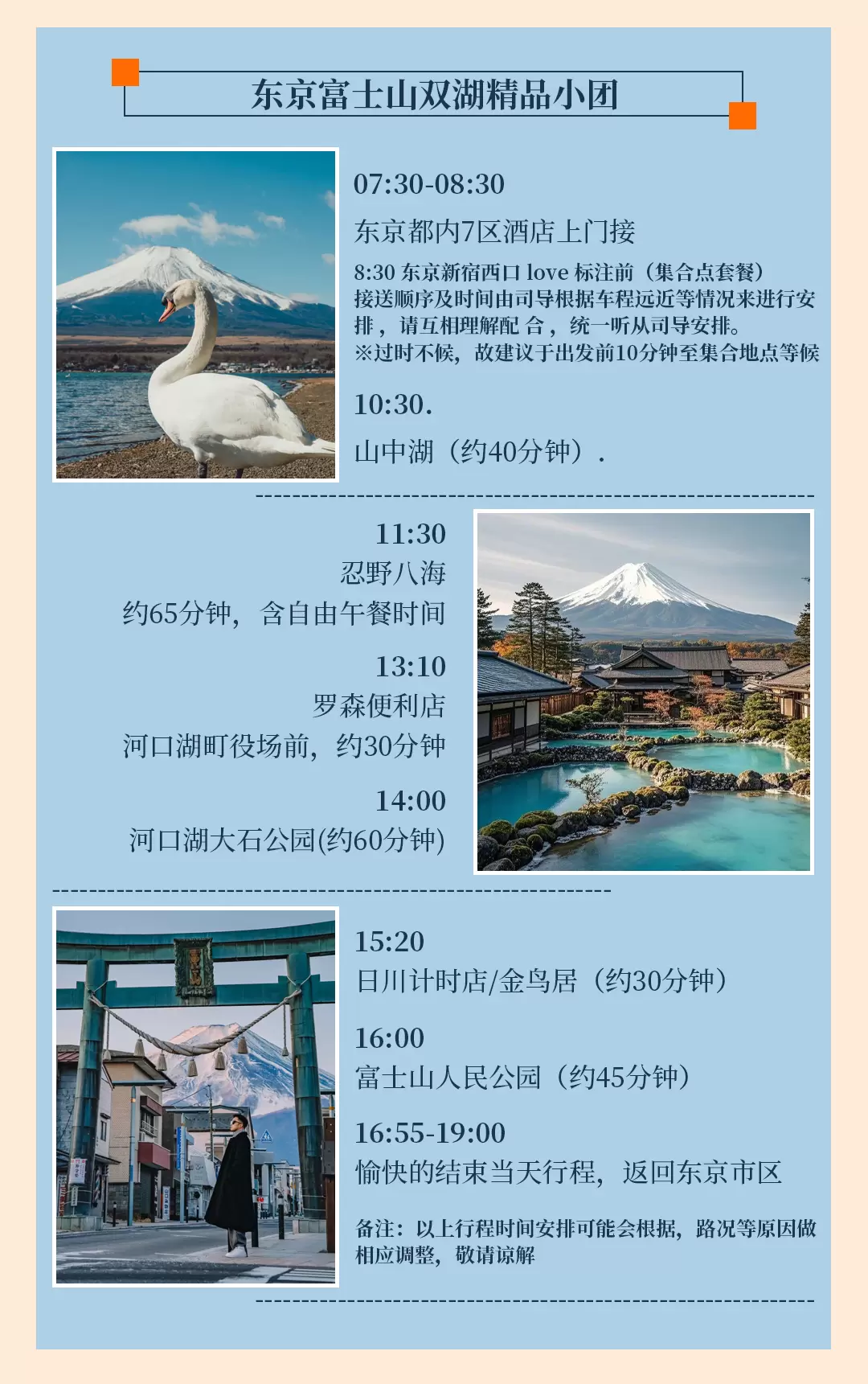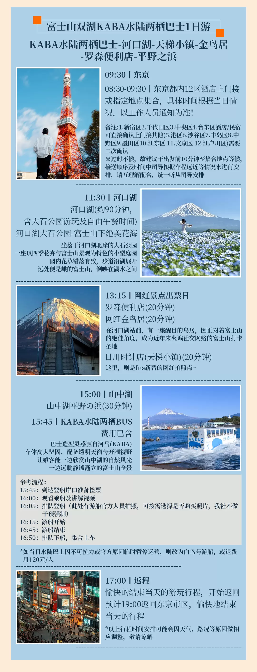 东京富士山+山中湖+河口湖+忍野八海一日游【9人小团/中文服务/山中湖骑行/河马水陆巴士/河口湖独木舟】