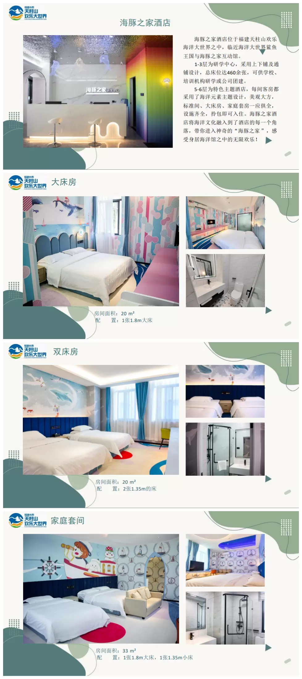 【酒店套餐】福建天柱山海豚之家酒店1晚+天柱山3园2日通票2张或海洋世界2张