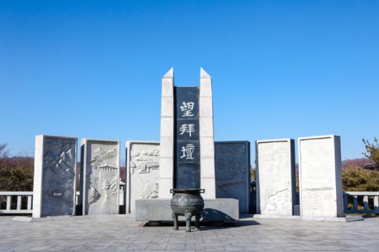 ▲ 临津阁坐落南北交界处,见证人们对和平的深切期盼。触摸历史留痕的火车,漫步挂满祈愿丝带的自由桥,感受四座人像与望拜坛的乡愁。登阁远眺,临津江畔的铁路静静延伸。
