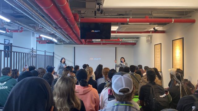 ▲ 听脱北者讲述自己的故事,现场仅提供英语翻译