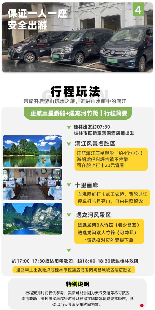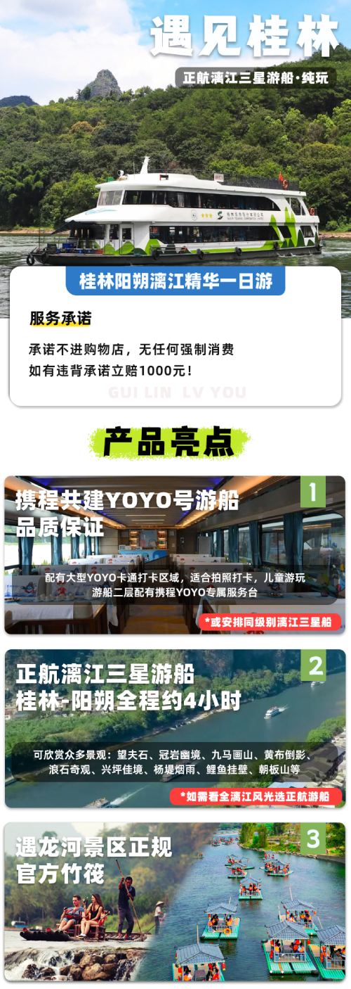 桂林-阳朔YOYO号或同级漓江三星游船+遇龙河竹筏一日游【[多团型可选]大巴团:不进店。8人小团:严控8人内纯玩无车销。私家包团:一单一团,时间景点可按需调整】