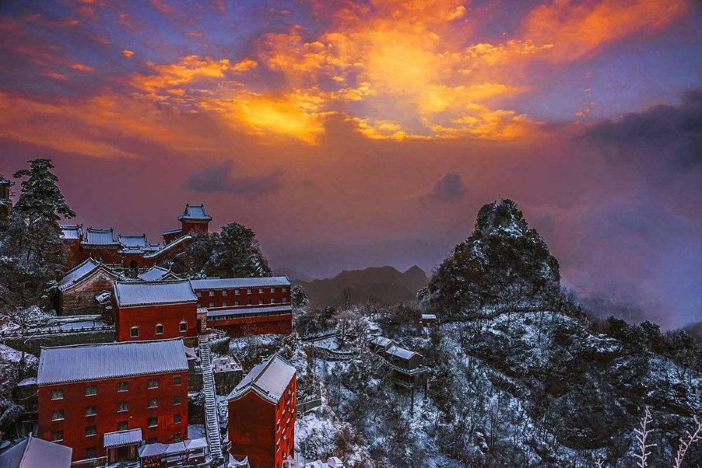 武当山古建筑群是包括“五岳”在内的其它名山无法比拟的。永乐皇帝的“北建故宫,南修武当”工程,使武当山的道观成为了明帝国皇室的家庙,也让这里的古建筑体现了皇宫的宏伟壮丽,而按照真武大帝修真神话的设计布局,又为这里增加了道教的神奇玄妙。