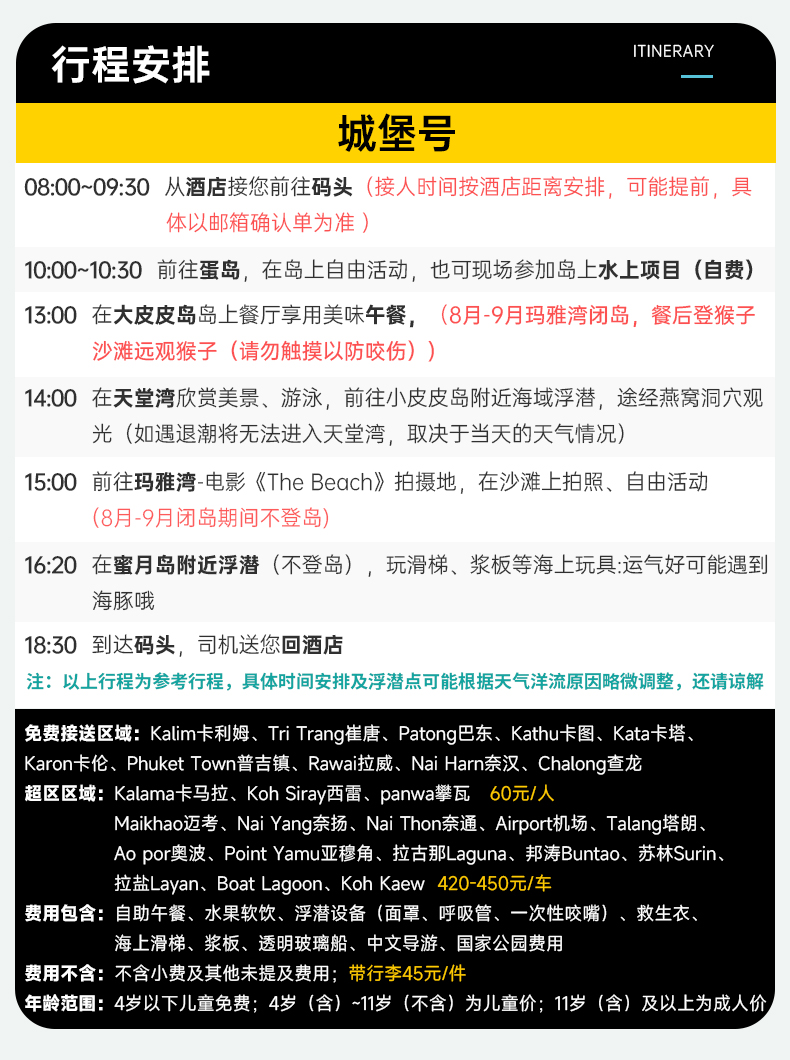 【精选小团】普吉岛皮皮岛一日游/大小皮皮岛/蛋岛/蜜月岛/出海浮潜/长尾船/阿玛尼号/pp岛/多船型可选