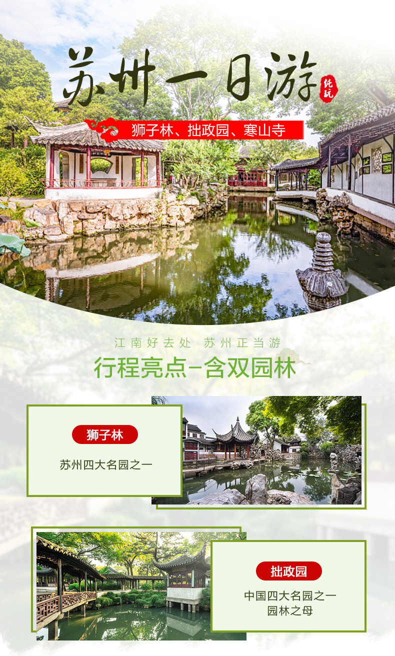 拙政园+寒山寺+狮子林+虎丘山风景名胜区一日游【多线路可选/自主发班/真纯玩/无自理/无购物】