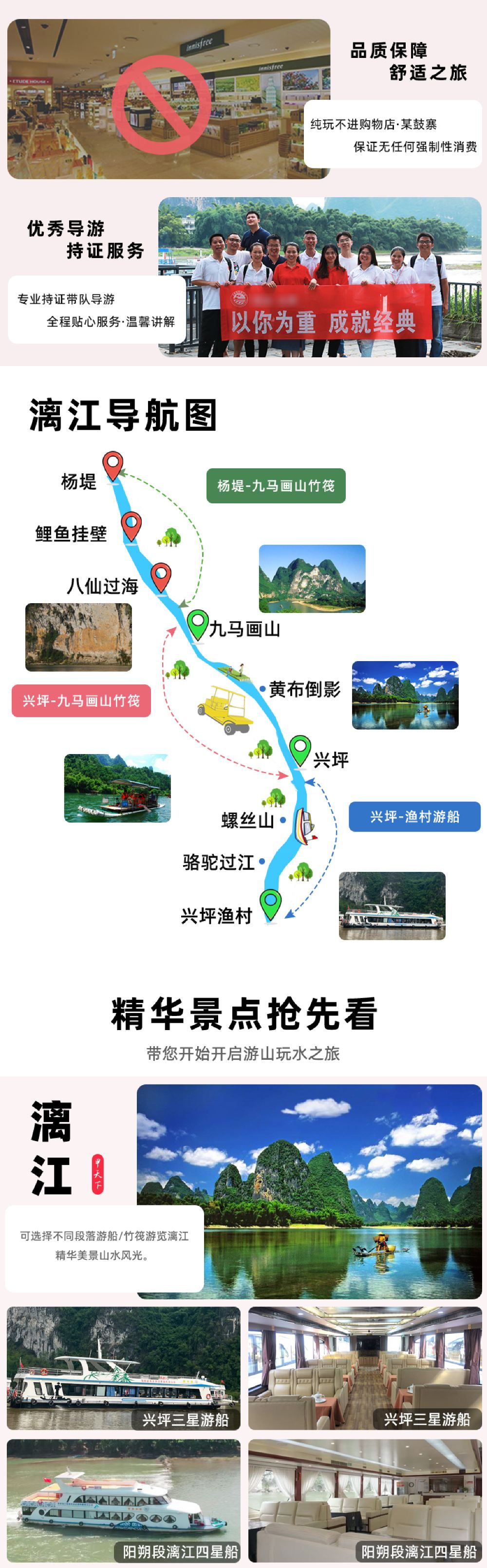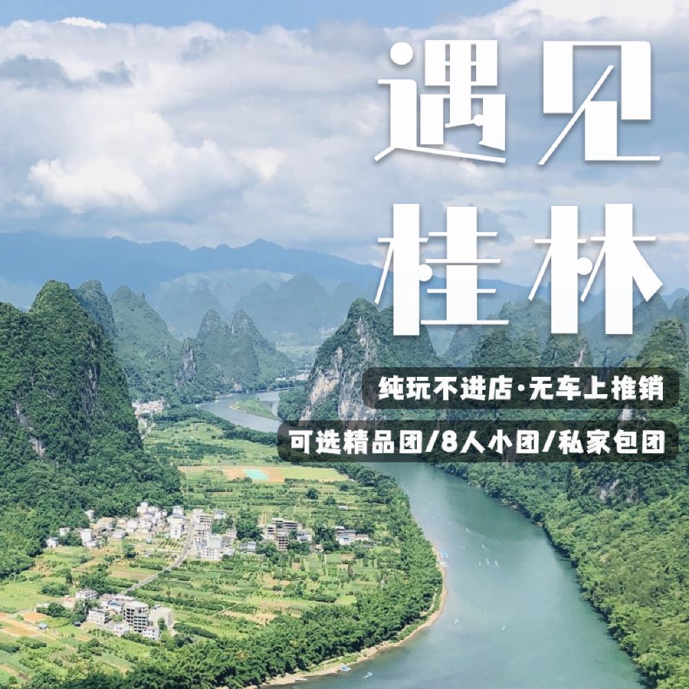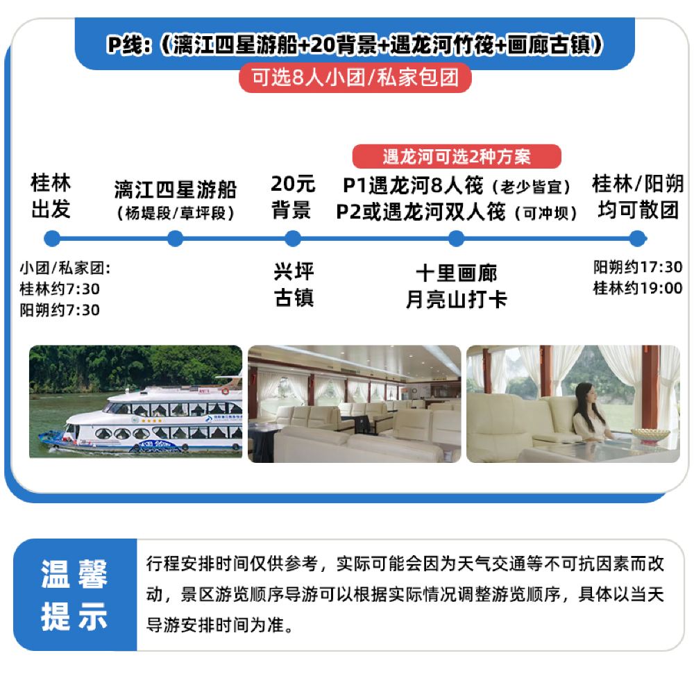 P1线:阳朔漓江四星游船+遇龙河8人竹筏漂游+20元背景+兴坪古镇+十里画廊;