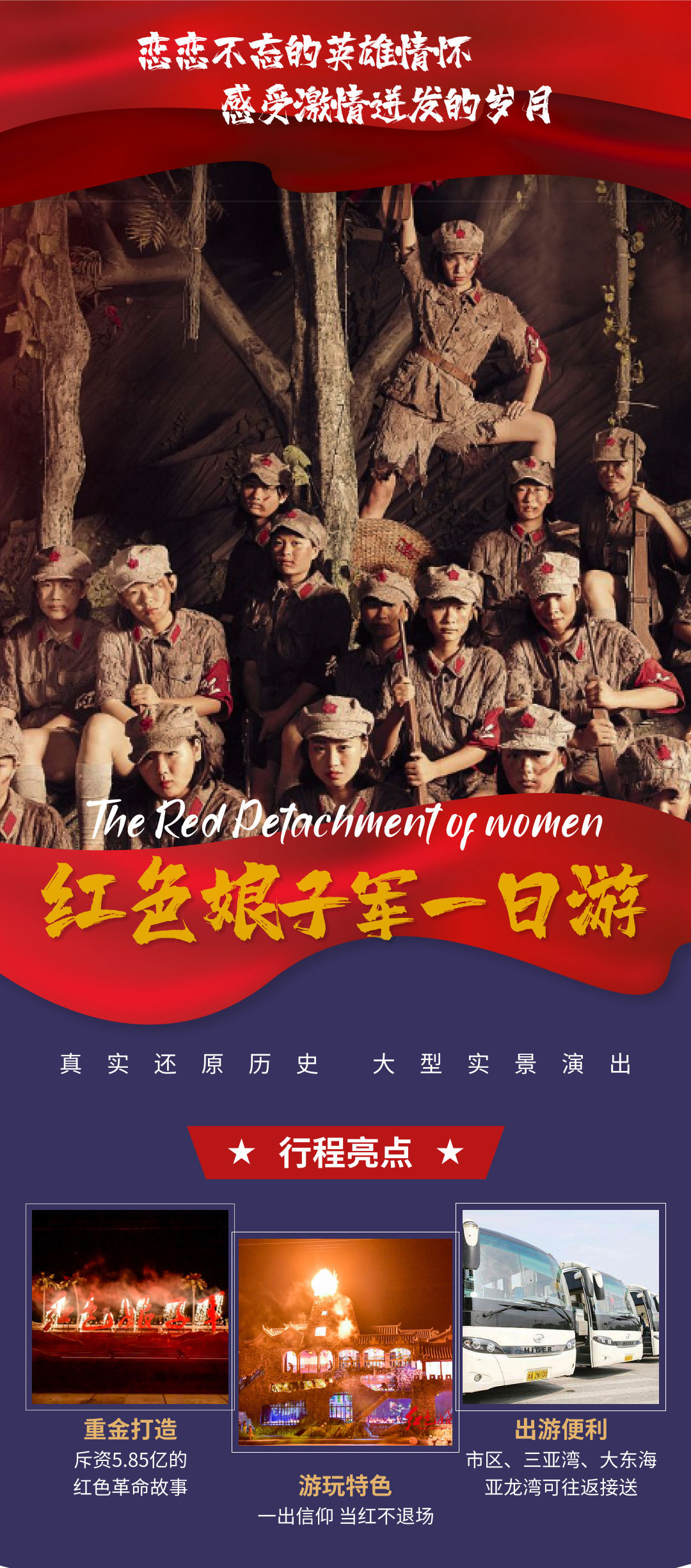 三亚三亚红色娘子军演艺公园一日游【灯展入园票+红色娘子军演出票|可自行前往】