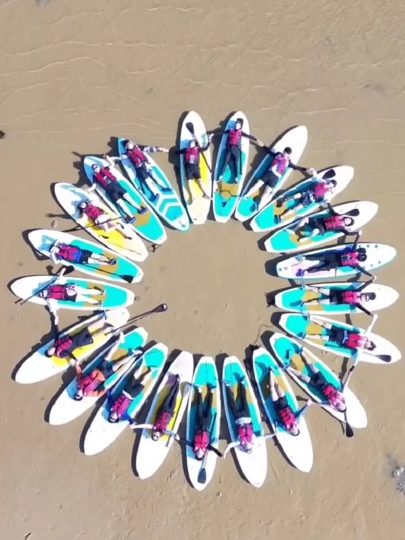 4:到达河道入口,教练分配,体能好的一人一板,体能差的或者不想太辛苦的建议二人一板,桨板划行穿梭过程教练会给每一位朋友拍照以留下美好的时光。