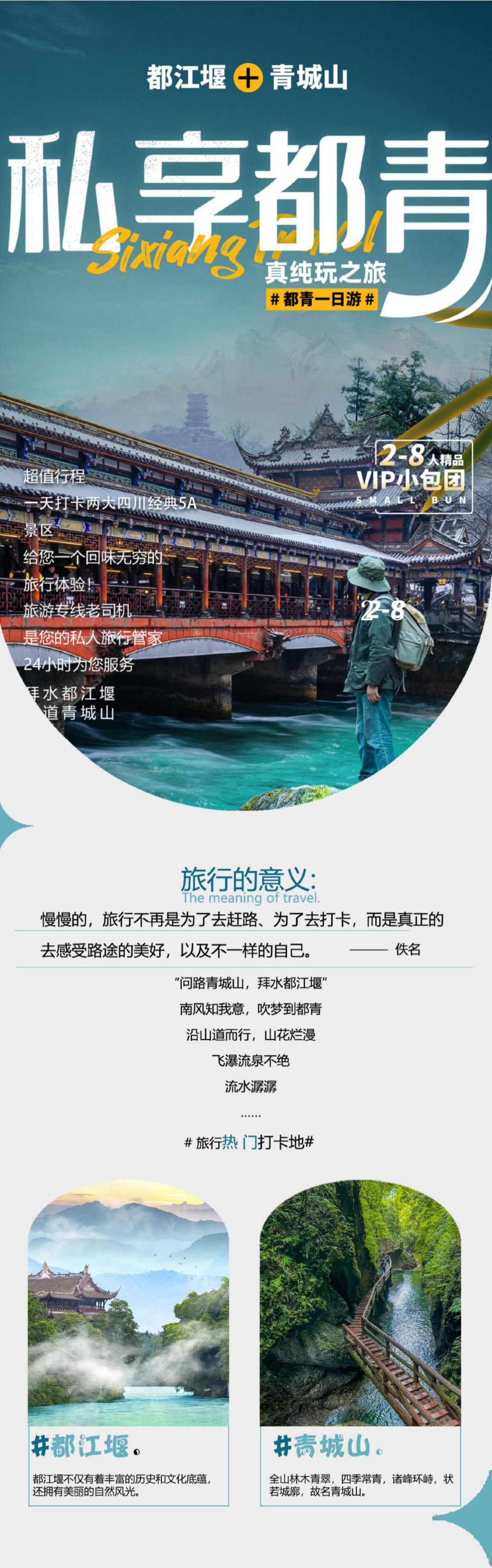 【拼小团】都江堰+青城山一日游【含都江堰讲解】【登顶玉垒山,叹服古人驯服江河的故事;探秘天师洞,聆听张道陵传道的回响】