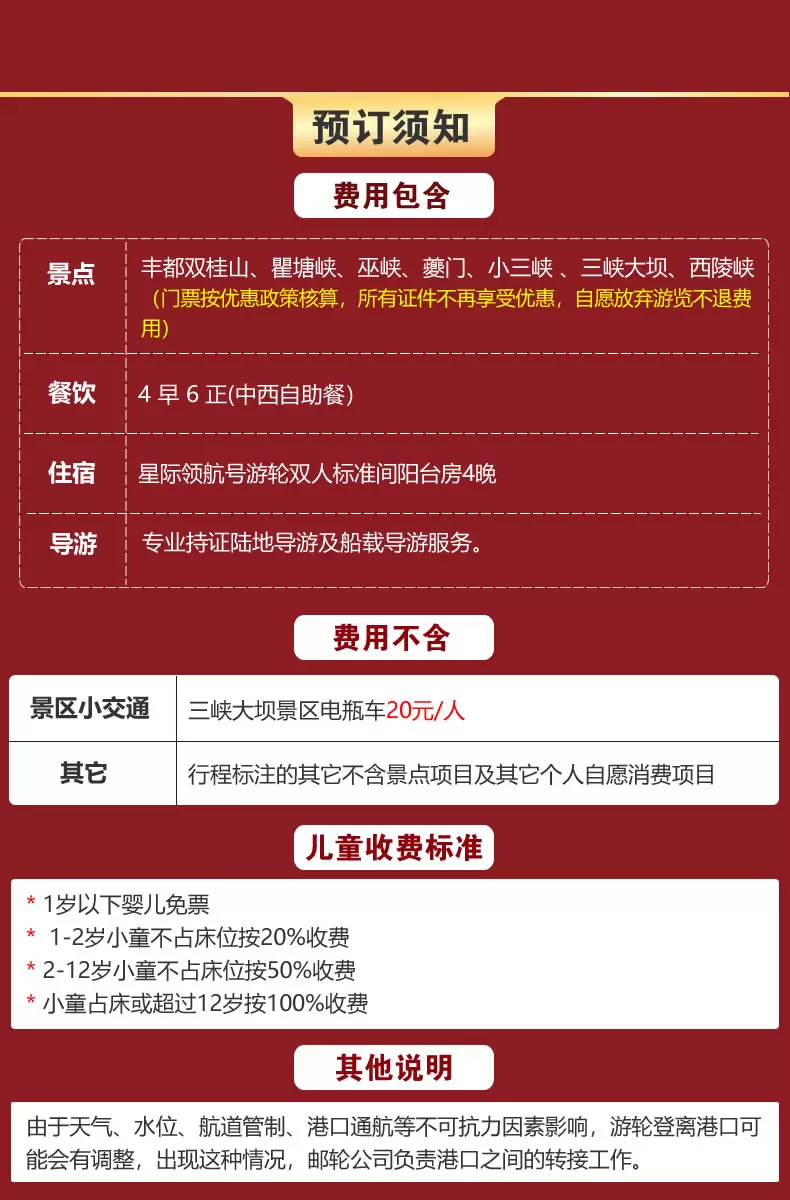 宜昌三峡大坝旅游区+重庆巫山小三峡+重庆双桂山国家森林公园五日游【星际领航游轮 宜昌出发】