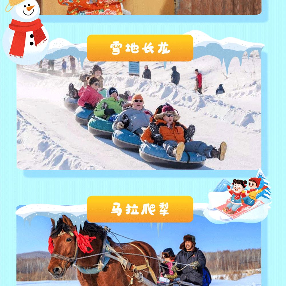 2、雪地长龙+雪地转转体验,马拉爬犁体验