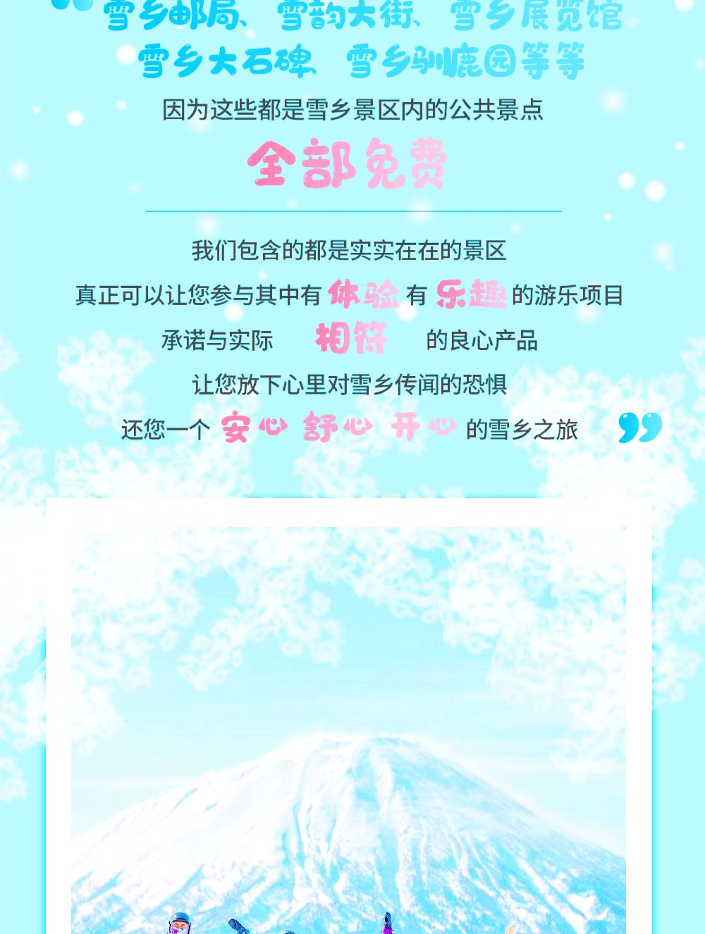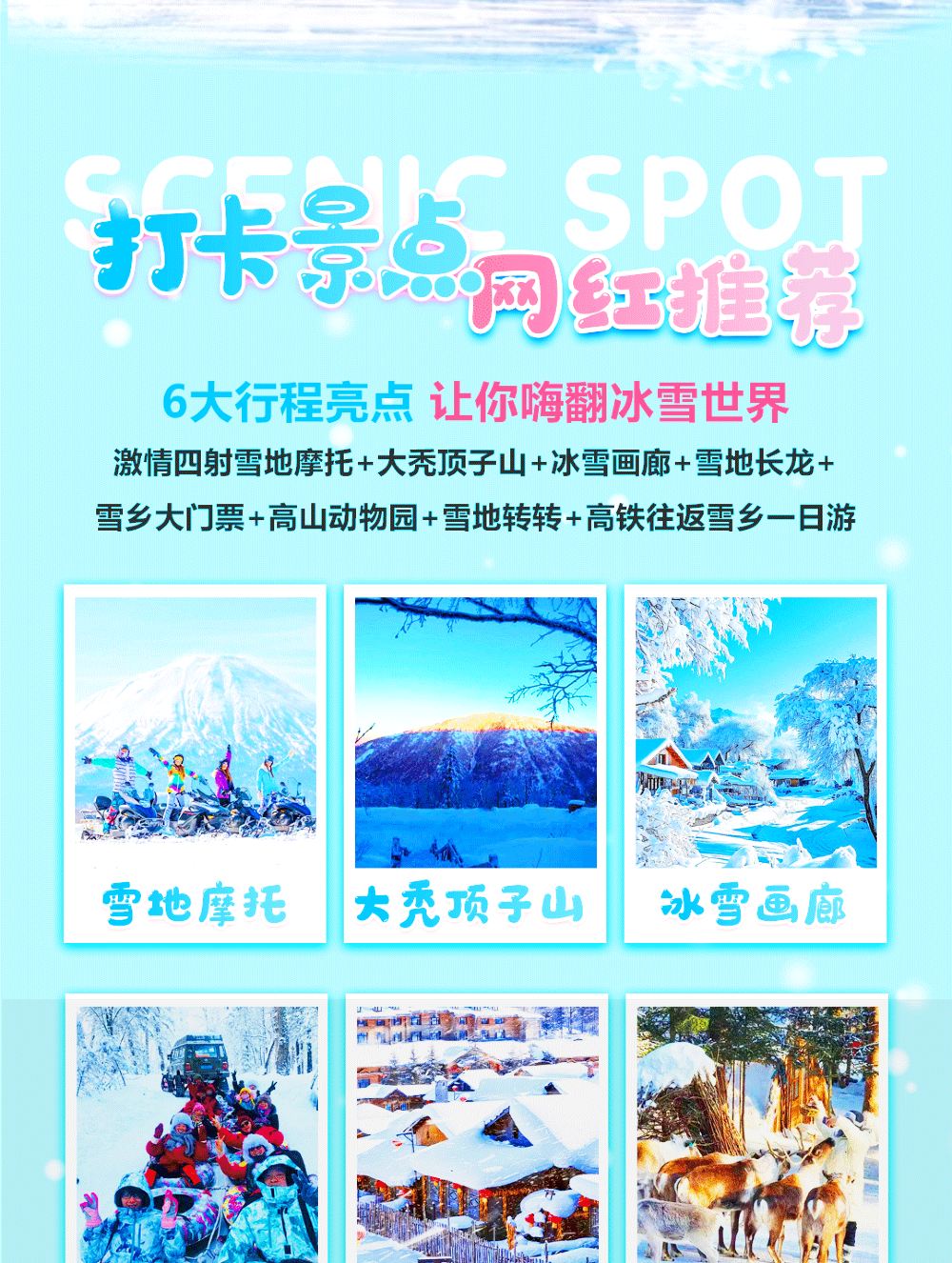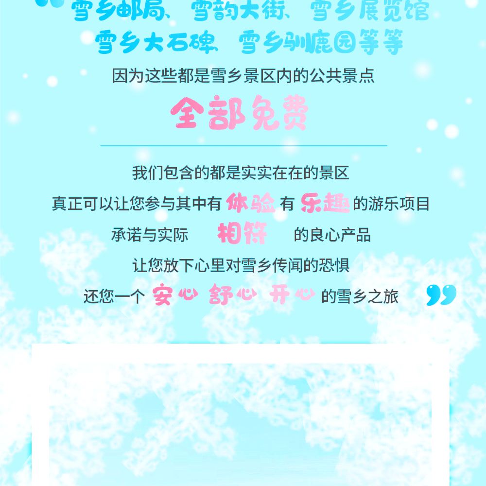 15人团包含:亚布力到雪乡往返车位费,雪乡大门票+倒站车,冰雪画廊,雪地摩托登大秃顶山,赠送花棉袄体验,雪地长龙,雪地转转,马拉爬犁体验