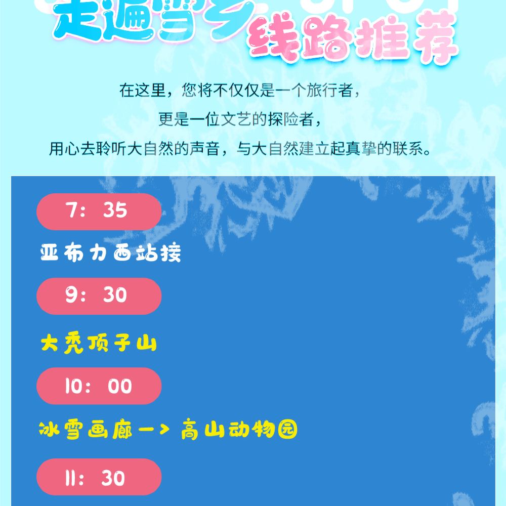 夜景团时间:早8点33分到亚布力西站。晚上18点20开始返回,买晚上21点的高铁回哈尔滨