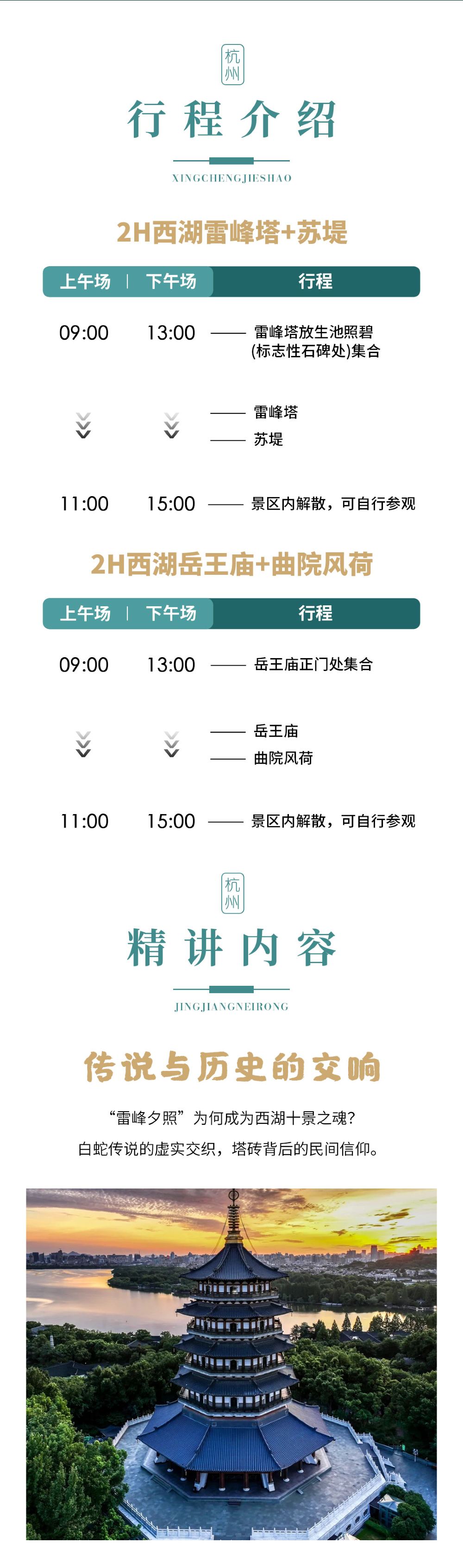 杭州西湖雷峰塔+苏堤/岳王庙+曲院风荷2H讲解团