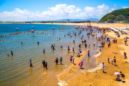 ▲ 【梅山湾沙滩公园】是一个集看海、划船、晒日光浴于一体的观光性沙滩,蓝色的天空搭配着白色的沙滩,海天一线,十分壮观。 在这里不仅可以有晒日光浴的专座,静静地躺在那里十分悠闲,也可以脱掉鞋子尽情享受沙滩的魅力。