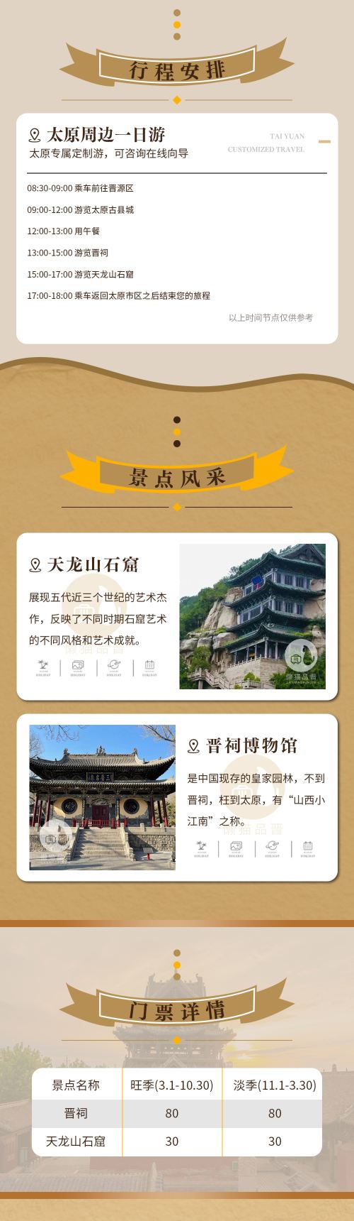 太原古县城景区+晋祠博物馆+天龙山石窟一日游【 独立包车】【升级一:晚起!慢玩!1对1包车服务,畅玩8.5H,一次玩个够】