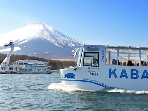 ▲ 【KABA水陆两栖巴士】(体验时间约50分钟,包含在山中湖景点停留时间内) ※因天气原因,山中湖KABA BUS 2月停运 ※此项目仅限【含kaba巴士】套餐的客人 ※山中湖 "水陆KABA巴士"为非固定场次,当日会根据巴士场次调整山中湖景点游玩顺序,接送/集合时间或被提前 可以为您提供超人气kaba Bus山中湖水陆两用巴士的项目预约。乘坐水上巴士,它可以 带您到森林裡兜风,也可以带您到湖面上遨游,这种「上山下海」的感觉是您平常体验不到的。