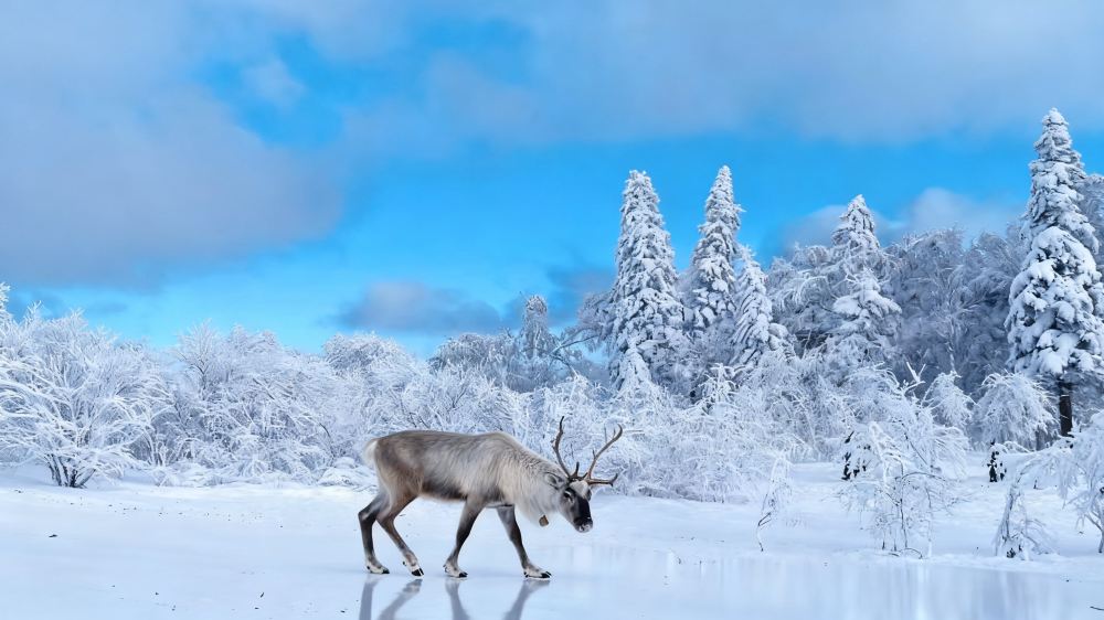▲ 雪岭的美从不是远观的盛景,更藏在触手可及的细节里。松枝被雪压弯了腰,枝桠间凝着的雾凇轻轻一碰便簌簌落下,沾在眉梢发间,凉丝丝的却让人欢喜;林间偶有紫貂探出小脑袋,灵动的身影在雪地里一闪而过,为寂静的山林添了几分生机,成了游客争相寻觅的 “雪中小精灵”。