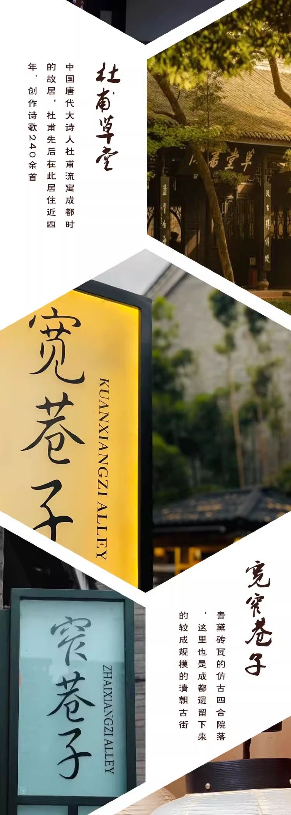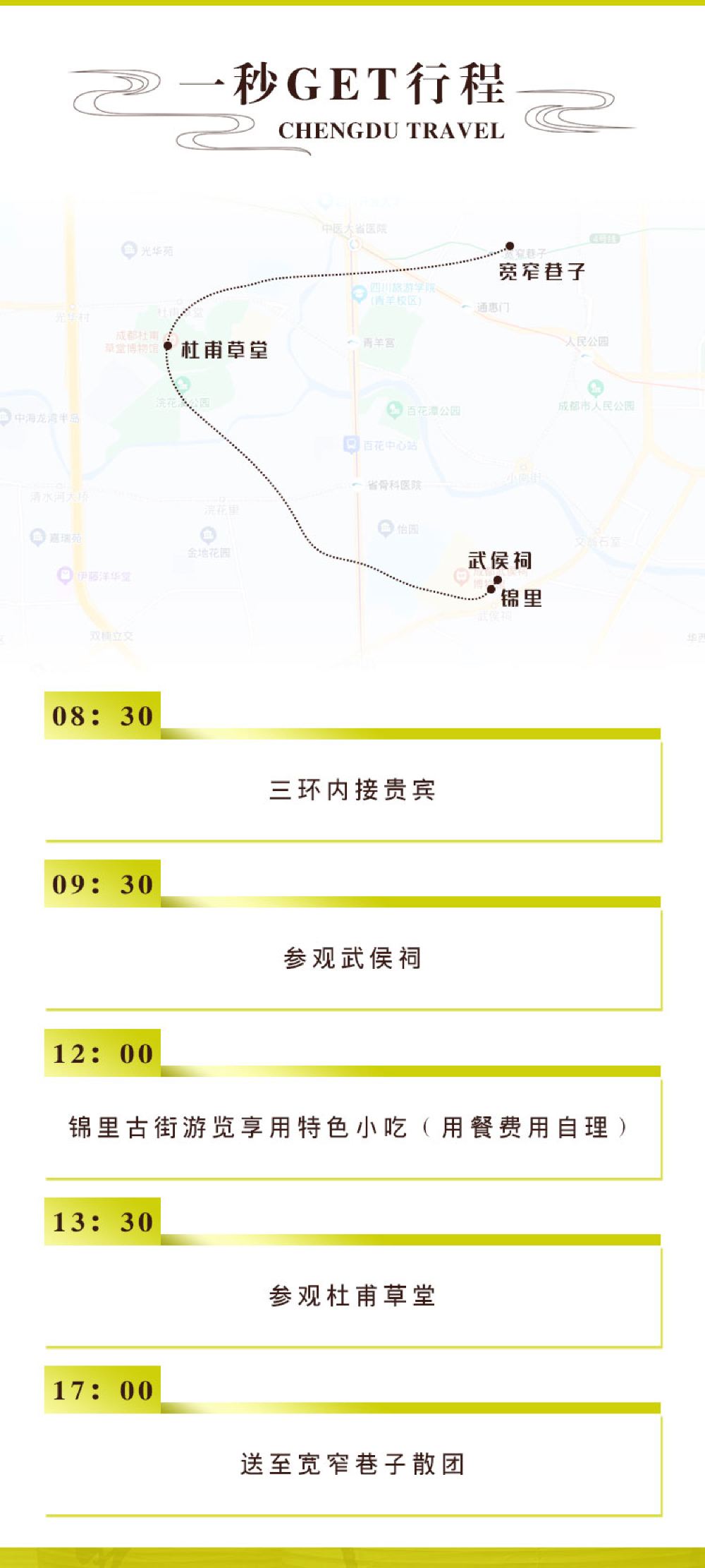 含车门票导游成都武侯祠杜甫草堂锦里宽窄巷子一日游8人内小团【专职导游陪同游玩+讲解,含门票,拼团成都三环内上门接,私家团三环内上门接送】