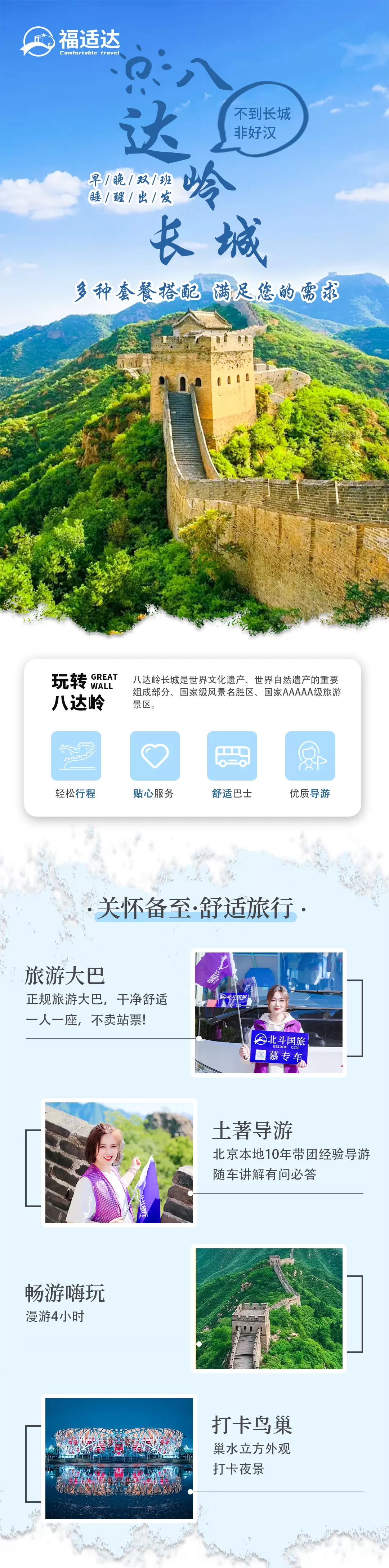 北京八达岭长城一日游【25人精品团◆纯玩无购物◆含景区门票◆4小时纯玩◆天天发团◆舒适出行】
