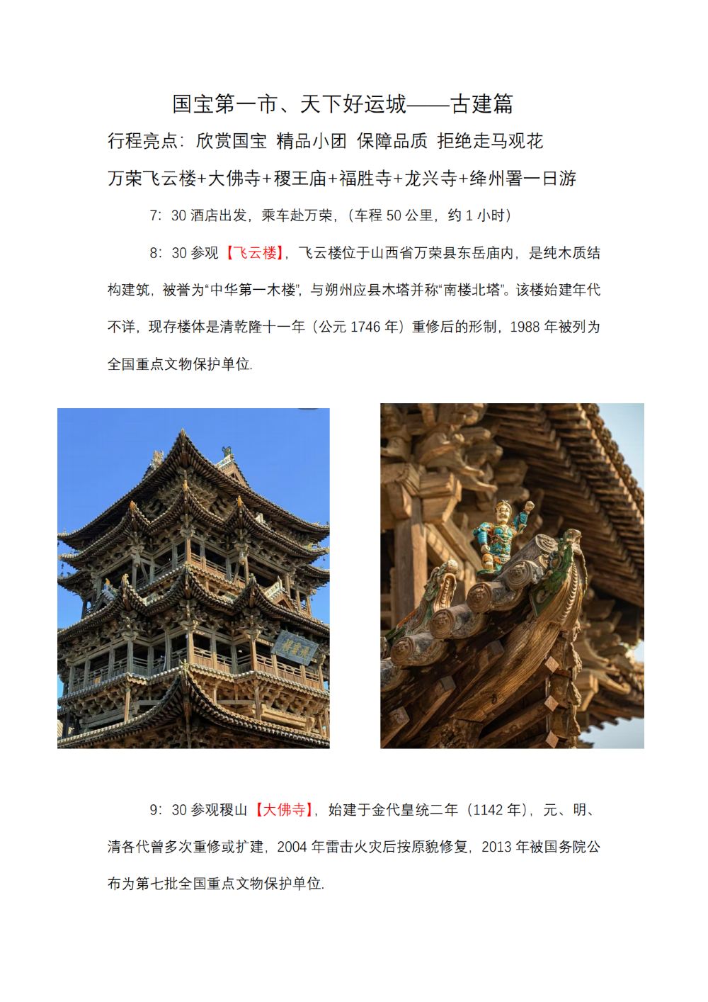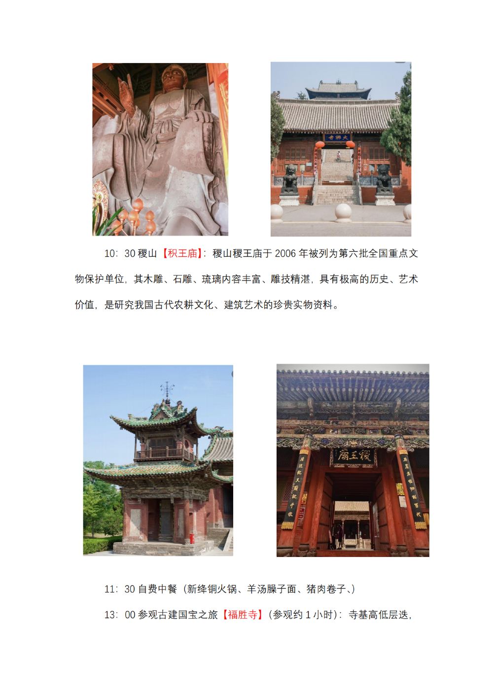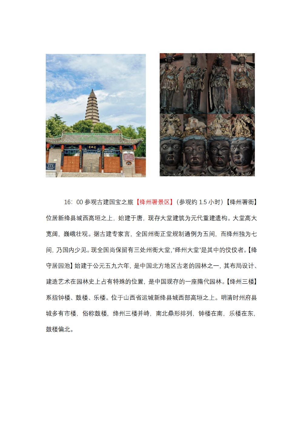 飞云楼+大佛寺+稷王庙+福胜寺+龙兴寺+新绛县绛州署一日游【【国宝万荣稷山新绛之旅】欣赏国宝 精品小团 保障品质 拒绝走马观花】