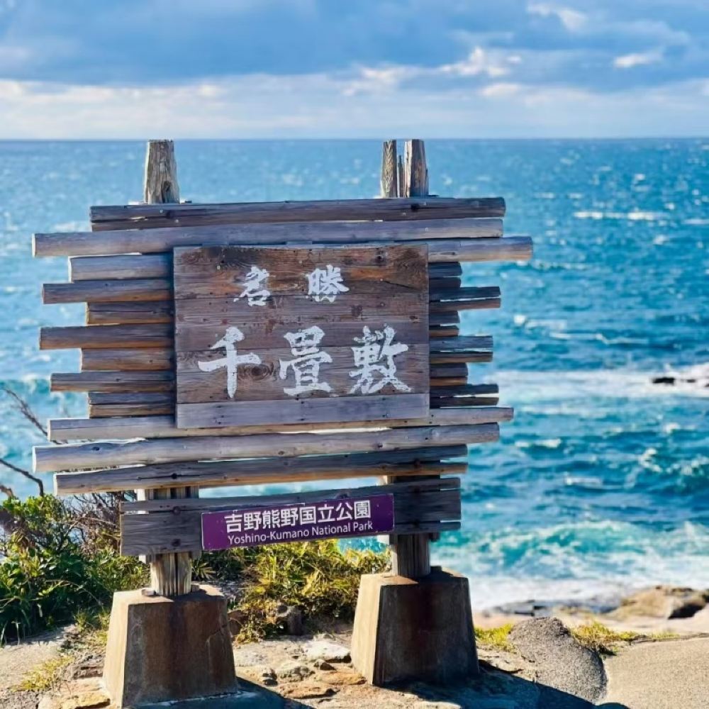 ▲ 13:30 南纪白滨 ▼三段壁洞窟(约40分钟 1500円门票已含 ) 千年海浪冲刷而成的天然断崖与海蚀洞窟,传说是平安时代海盗“熊野水军”的藏身之地。乘电梯直达洞窟深处,近距离感受太平洋怒涛拍岸的震撼,岩壁湿润反光,如入秘境。洞内设有灯光与神社布置,神秘与自然力量并存,是一次视觉与历史交汇的探险体验。 搭乘垂直电梯下行至洞窟: 沿着洞内设有照明与防滑设施的步道行走,欣赏岩壁、潮水、神社、风洞等 拍摄海浪冲击洞口的壮观画面(极具纪实感) 洞外还设有观景台、足汤、咖啡店等可短暂停留