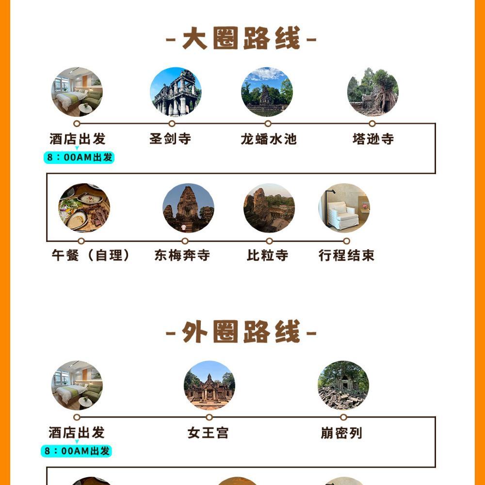 柬埔寨暹粒吴哥窟大小圈包车一日游【小吴哥+圣剑寺+比粒寺】【暹粒市区酒店接送,优质有保障】