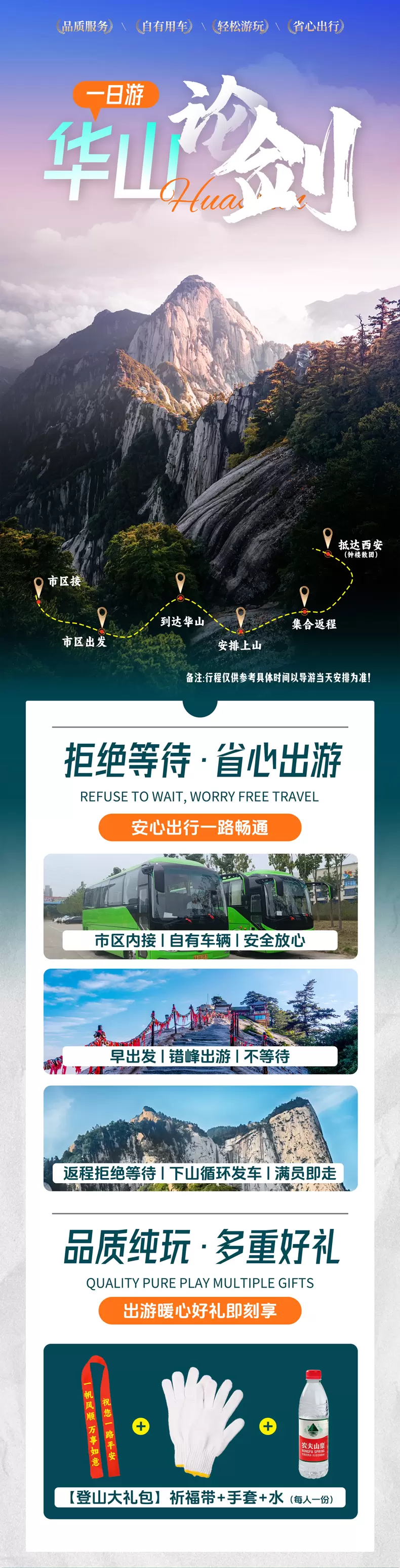 华山一日游【6H深度游玩·登山礼包·自热饭·索道进山可选·二环内接含讲解】