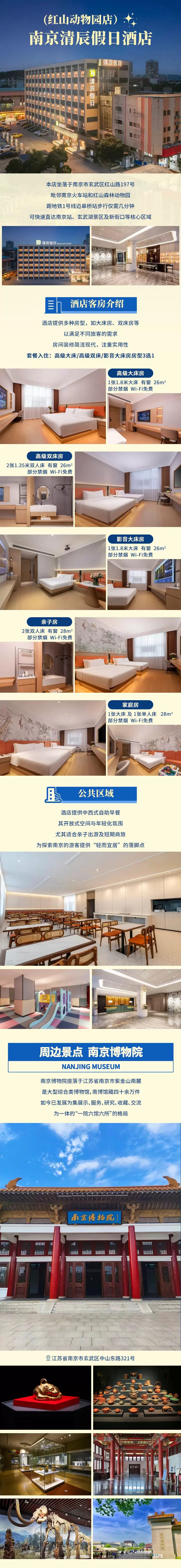 【酒店套餐】【房型5选1,不加价】南京清辰假日酒店 (红山动物园店)2天1晚+双人南京博物院门票+双人自助早餐