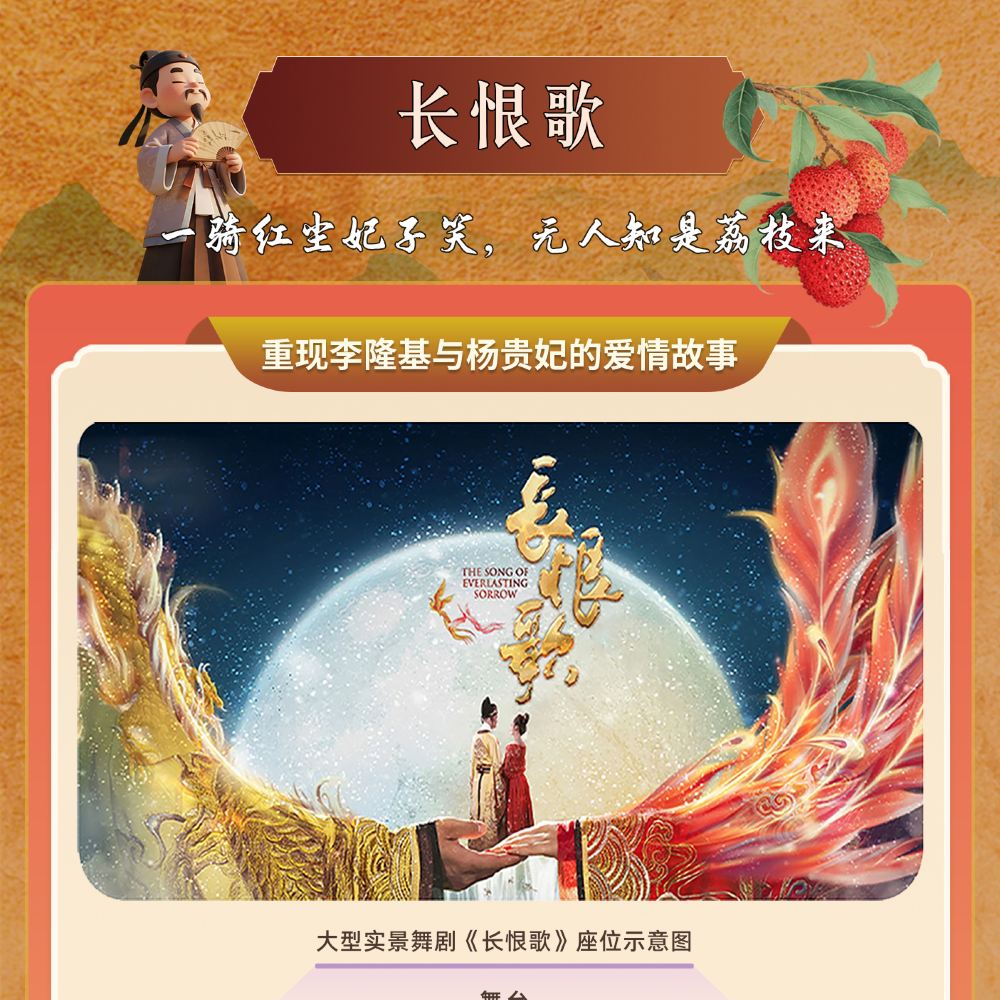 ③2025年自10月17日起,《长恨歌》演出时间:第一场18:30-19:40,第二场19:55-21:05,第三场21:20-22:30,演出时间约1小时10分左右(演出时间景区可能随时调整,具体以景区当日实际时间为准,敬请知悉!)