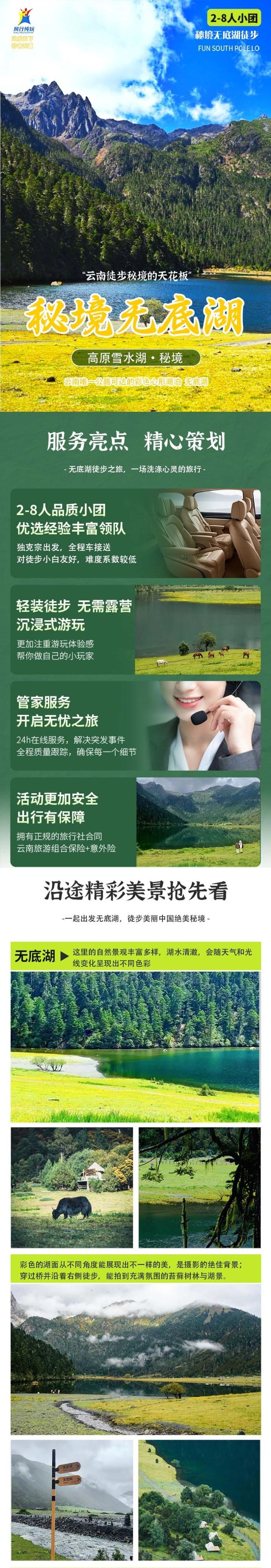 2:11:00左右经过3小时的车程,终于抵达神秘而美丽的无底湖。下车后稍作休整,准备迎接接下来的徒步挑战。3.11:30-13:30沿着高山湖畔徒步,3:5公里的路程大约需要2小时。在徒步过程中,尽情欣赏湖泊的风光,感受大自然的魅力,聆听山间的鸟鸣与风声。