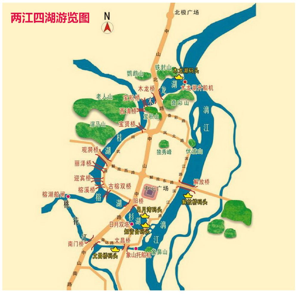 桂林两江四湖景区【日游一江四湖/夜游两江四湖多套餐任选】【环湖游城赏桂林城区精华景观,坐船夜游更可欣赏夜景。】