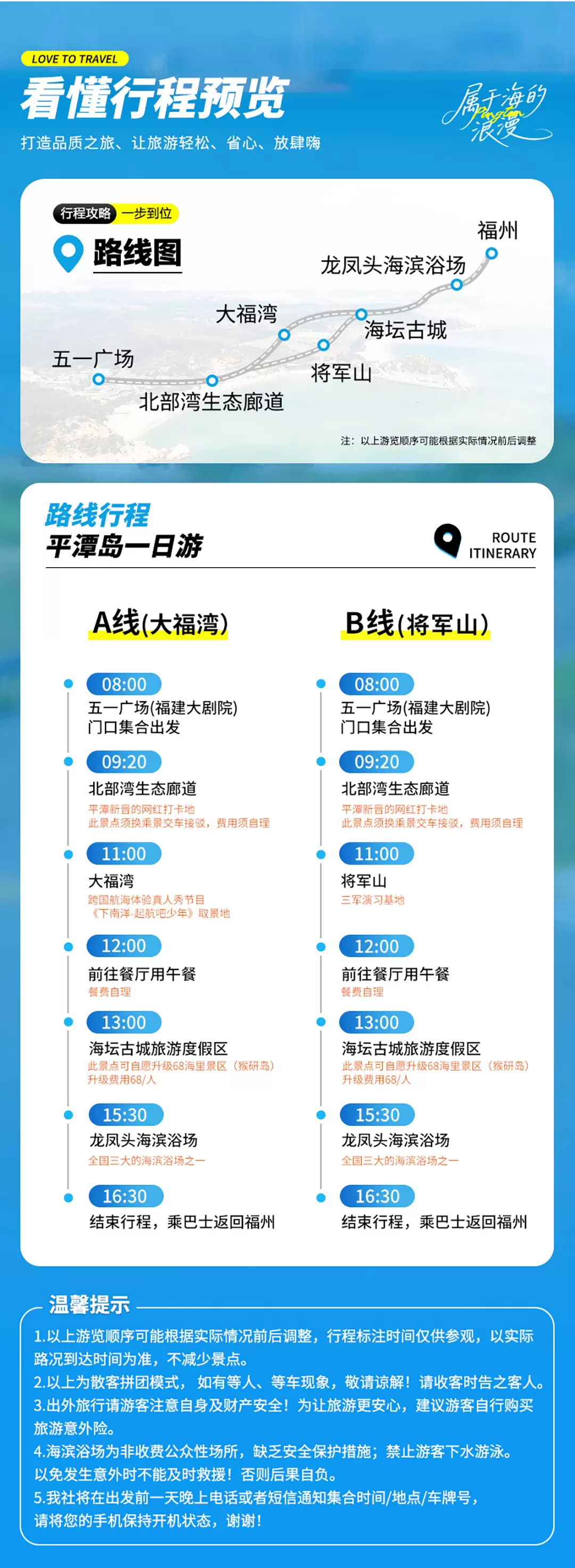 福州平潭岛+龙凤头海滨浴场+海坛古城一日游【纯玩无购物|大福湾/将军山热门线|可升猴研岛|可选独团行程更自由】