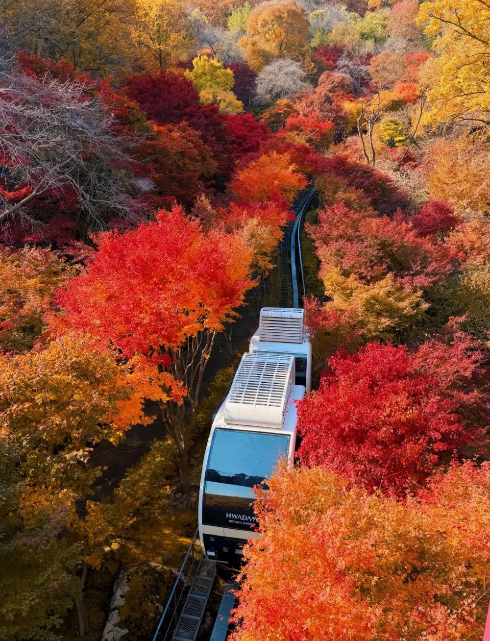 ▲ ️和谈林是位于韩国首尔近郊、京畿道广州市的一处现代生态园林,以其精致的自然景观、先进的环境设计和便捷的观光设施而闻名。 园区分为多个主题区域,如竹林、枫林、花卉园、湿地园等,每个区域都体现不同的自然美学。 园内设有单轨空中列车,可轻松穿越起伏的山林,从高空俯瞰五彩斑斓的树海与花园,尤其适合不便步行的游客。 列车路线贯穿园区核心景观区,是欣赏大片枫叶、樱花和秋季彩林的较佳方式。 请注意:单轨列车车票可能需要在线预约,尤其在旅游旺季(如赏枫期)非常抢手,现场可能难以购票。建议提前在官网查询预订方式。