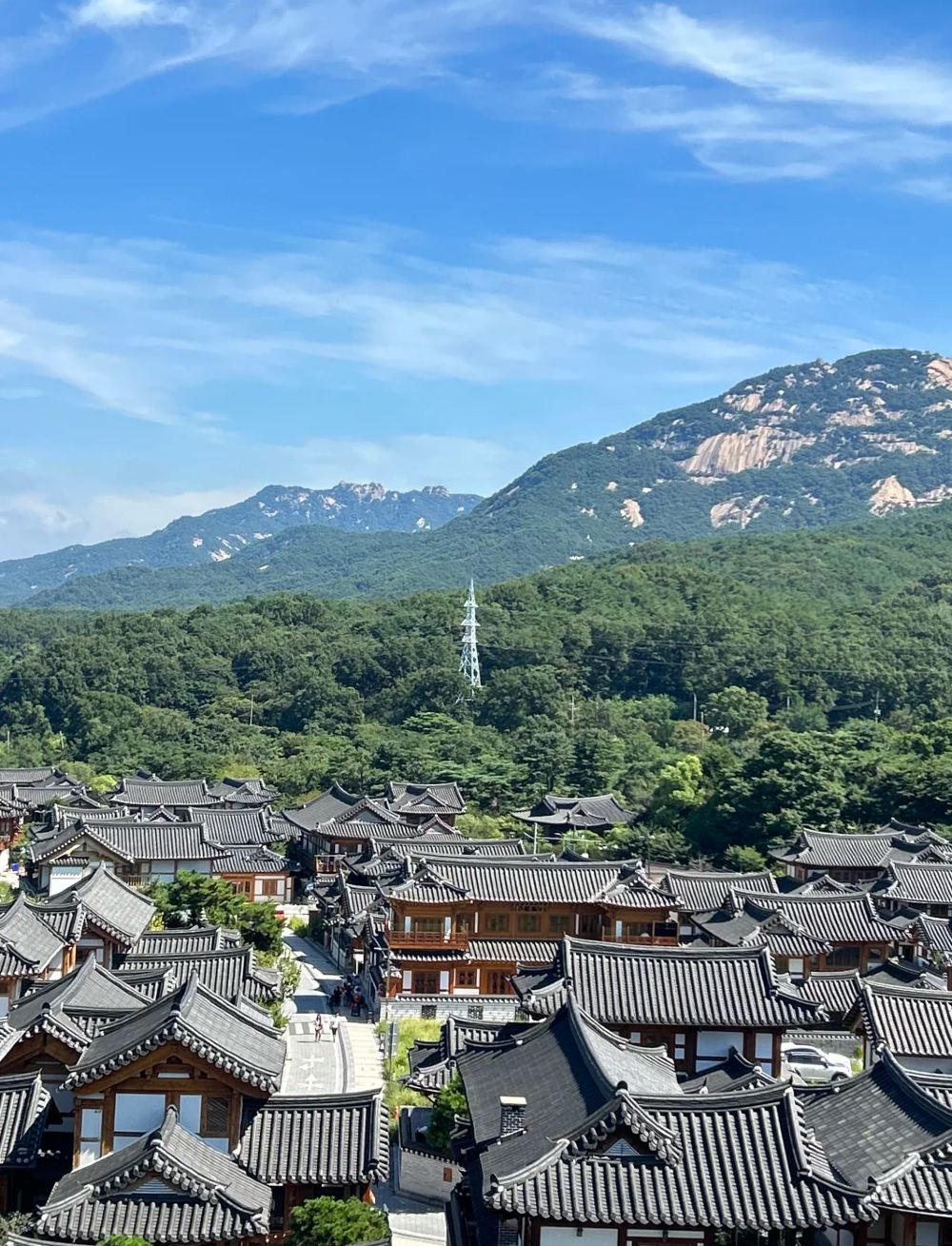 ▲ 韩屋村依山而建,远处是北汉山的连绵群峰,近处是错落有致的传统韩屋,整片区域宛如一幅画。 ️村内的韩屋虽然外观传统,但很多都配备了现代化设施,有些还经营咖啡馆、茶屋和民宿,既能体验古风又很舒适。 ️很多韩屋开放体验,可以试穿韩服或品尝传统韩餐,超适合喜欢文化体验的游客。