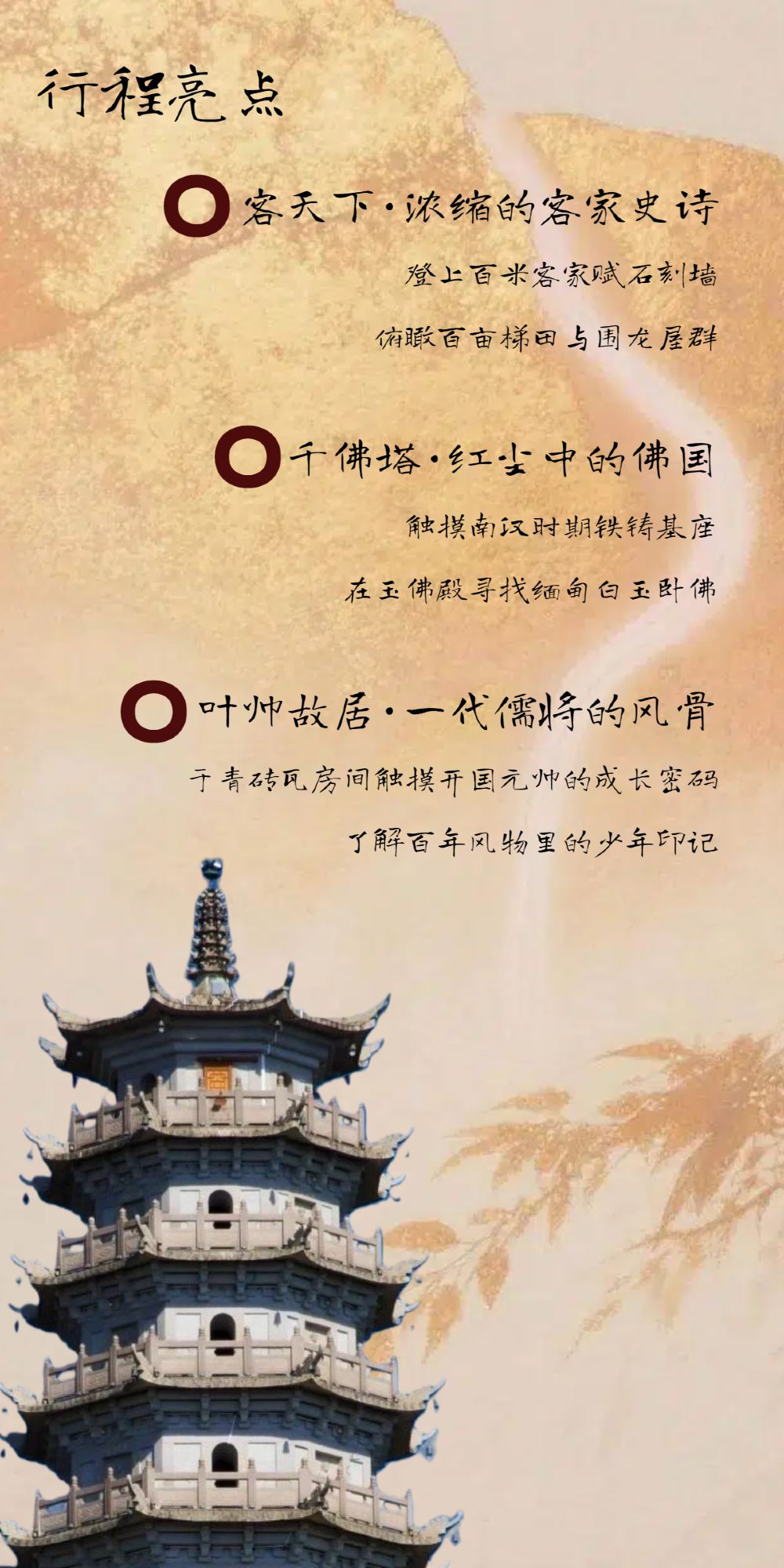 梅州包车9小时一天游/打卡客天下景区+千佛塔+叶帅故居自由行【经典路线客家韵,一日读懂梅州情。】